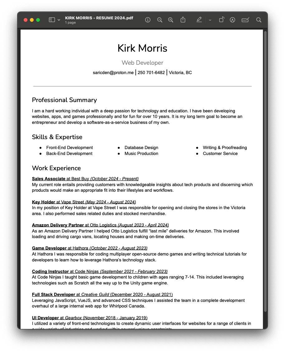 If you're in the software industry, and want to get in touch, download my resume and email!
